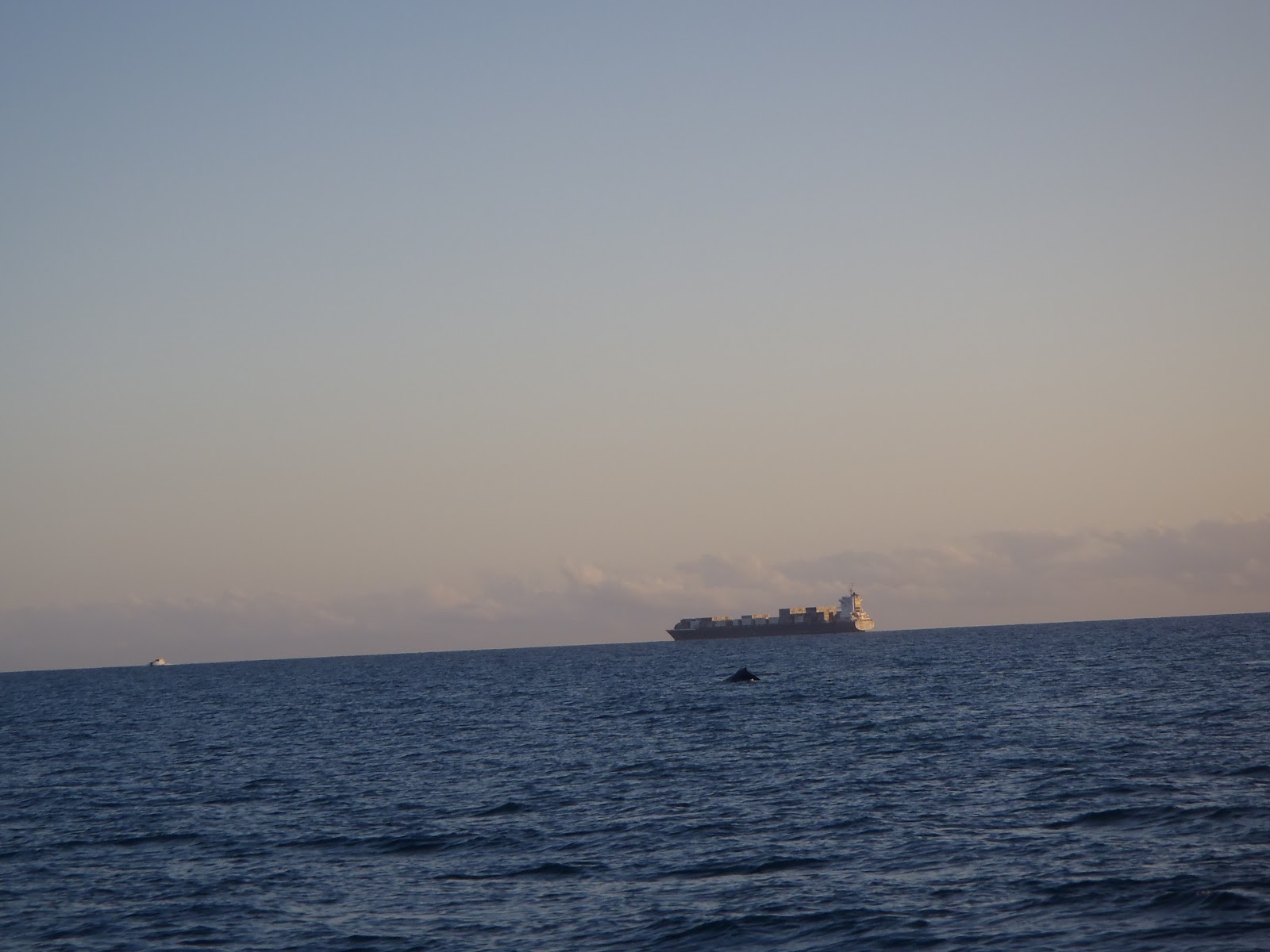 It's quite surreal to sail in the dark - well, in this case, motor as there was not a breath of wind and the sea had only a slight following swell. With no moon, the stars and planets were brilliant. Quite a number of little fishing boats zipped out from Cairns towards the reef and rocky headlands in the pre-dawn. Their navigation lights disappeared every now and again in the swell. A big tanker looming up behind, but well to the east of us, was far more obvious.